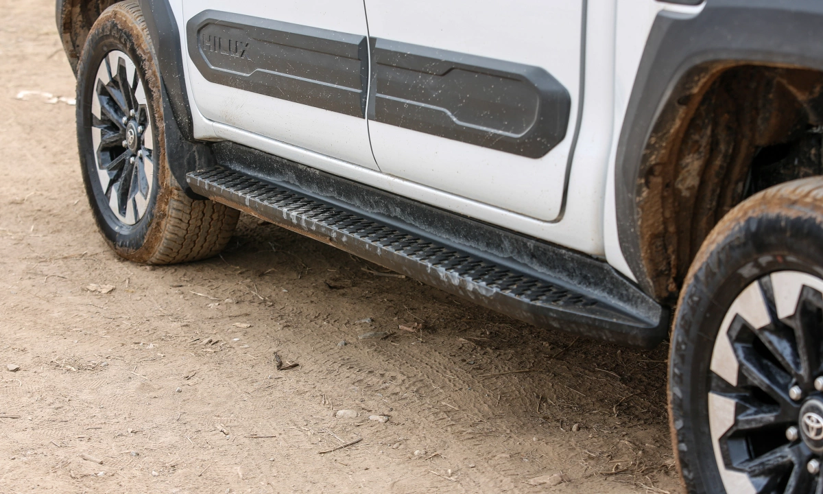 Ngay phía sau bánh xe, Hilux mới cũng có bậc bước chân hỗ trợ đứng chất/dỡ hàng lên thùng, tương tự Ranger.
