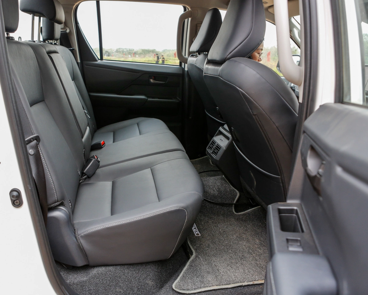 Không gian hàng ghế sau với tựa lưng cố định. Ghế bọc da trên bản hai cầu, bản một cầu sử dụng ghế nỉ.